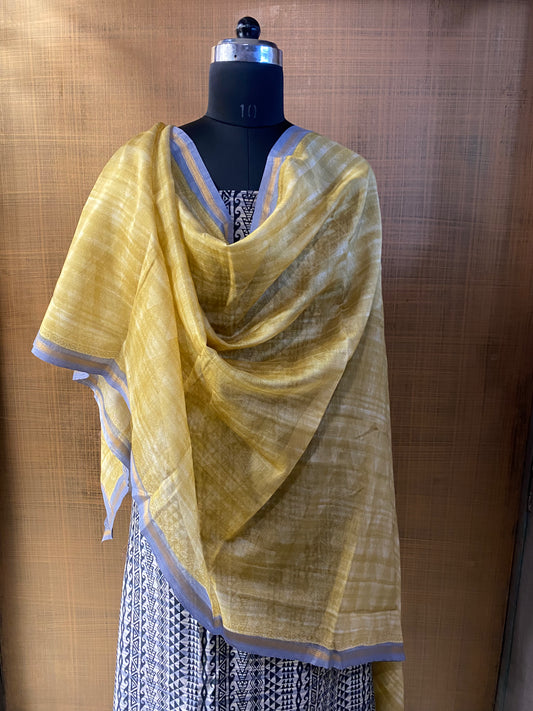 Black Ajrakh Print Madaal Satin stole with Leaf Print border