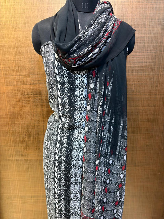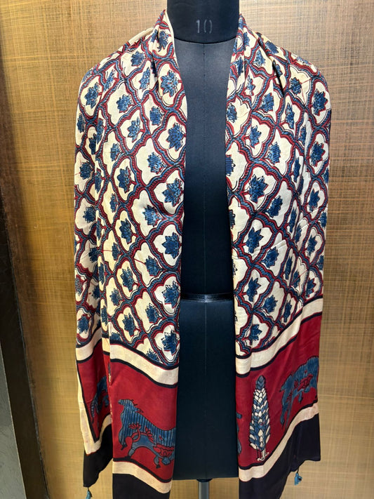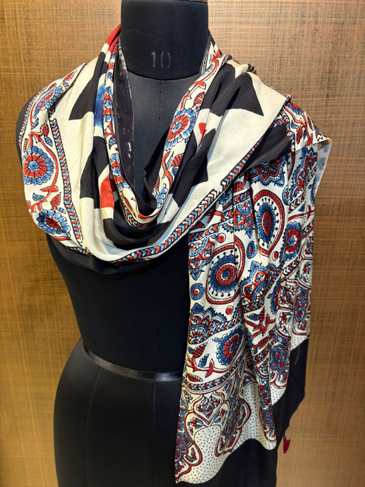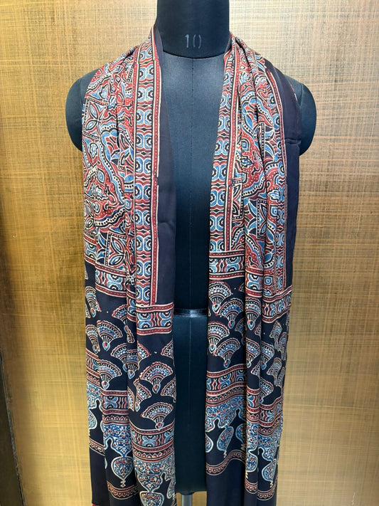 Black blue & Red Ajrakh Print Modaal Satin Stoll