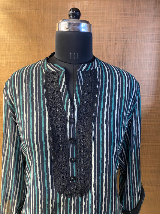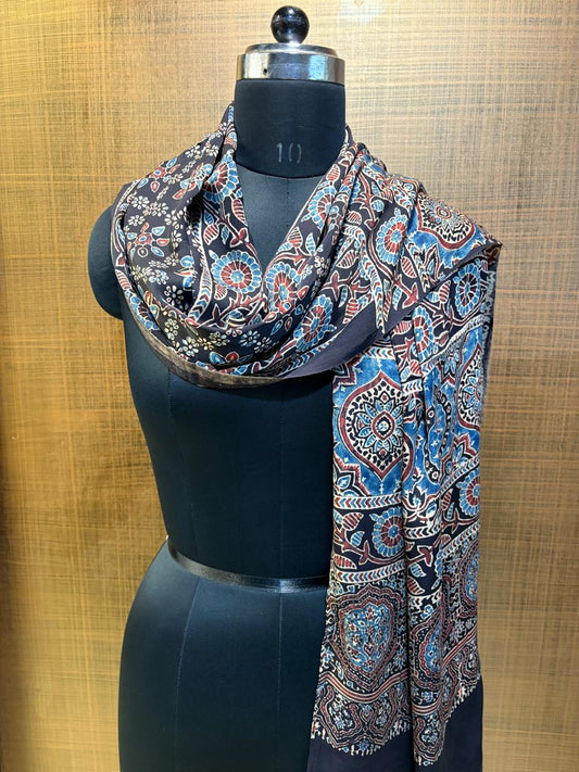 Black blue & Red Ajrakh Print Modaal Satin Stoll