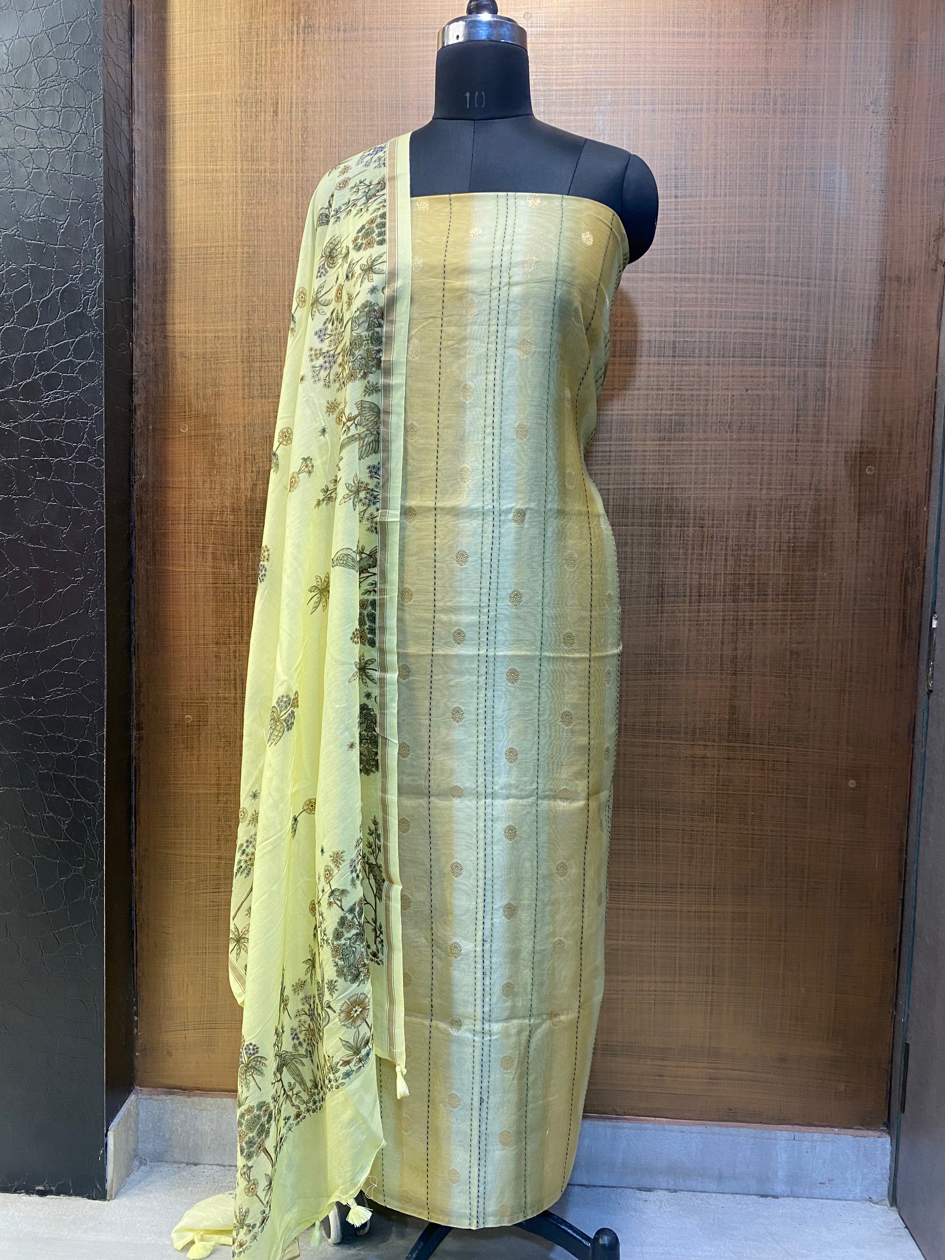 Lime Yellow Maheshwari with Banarasi Booti Suit