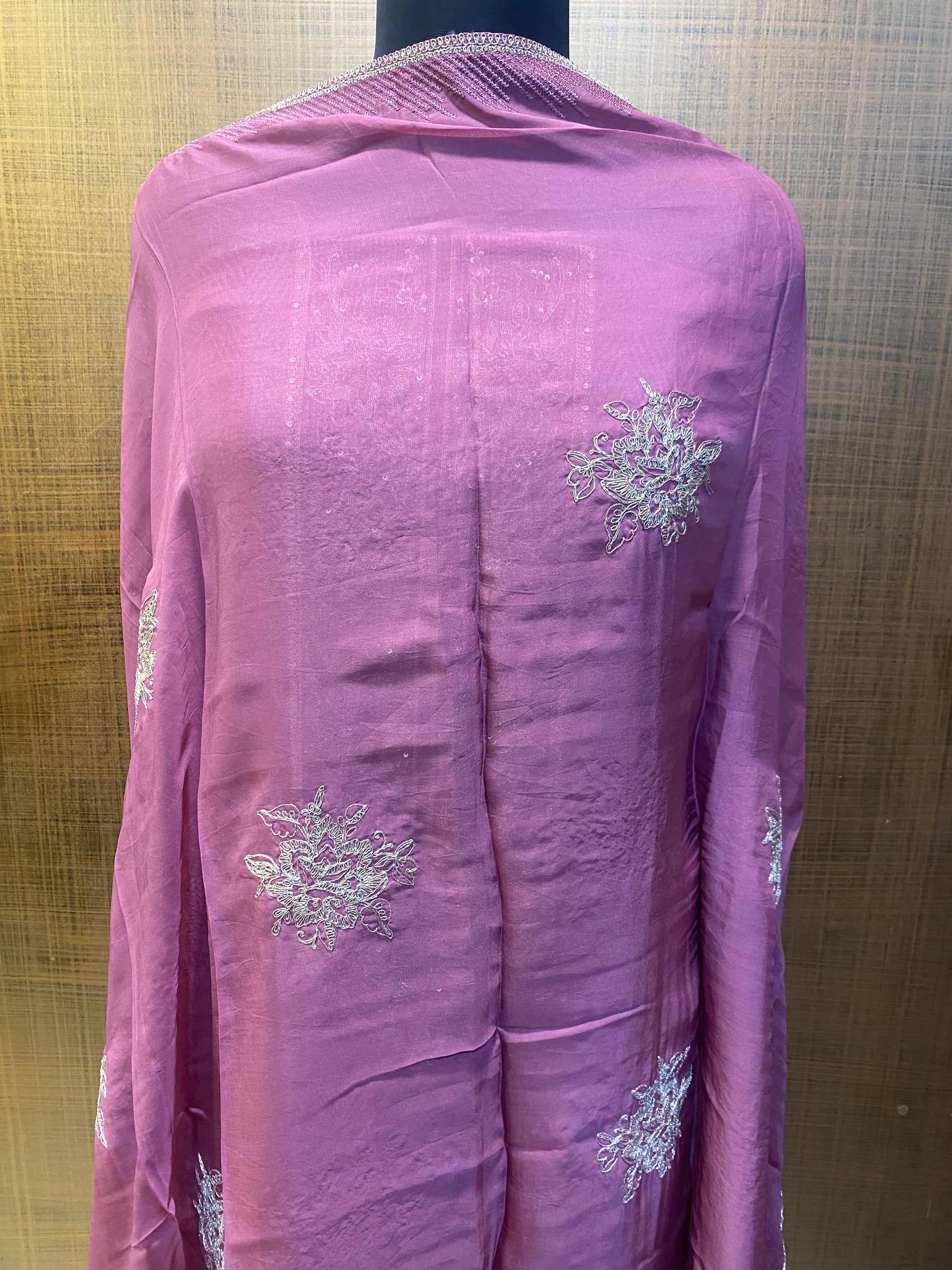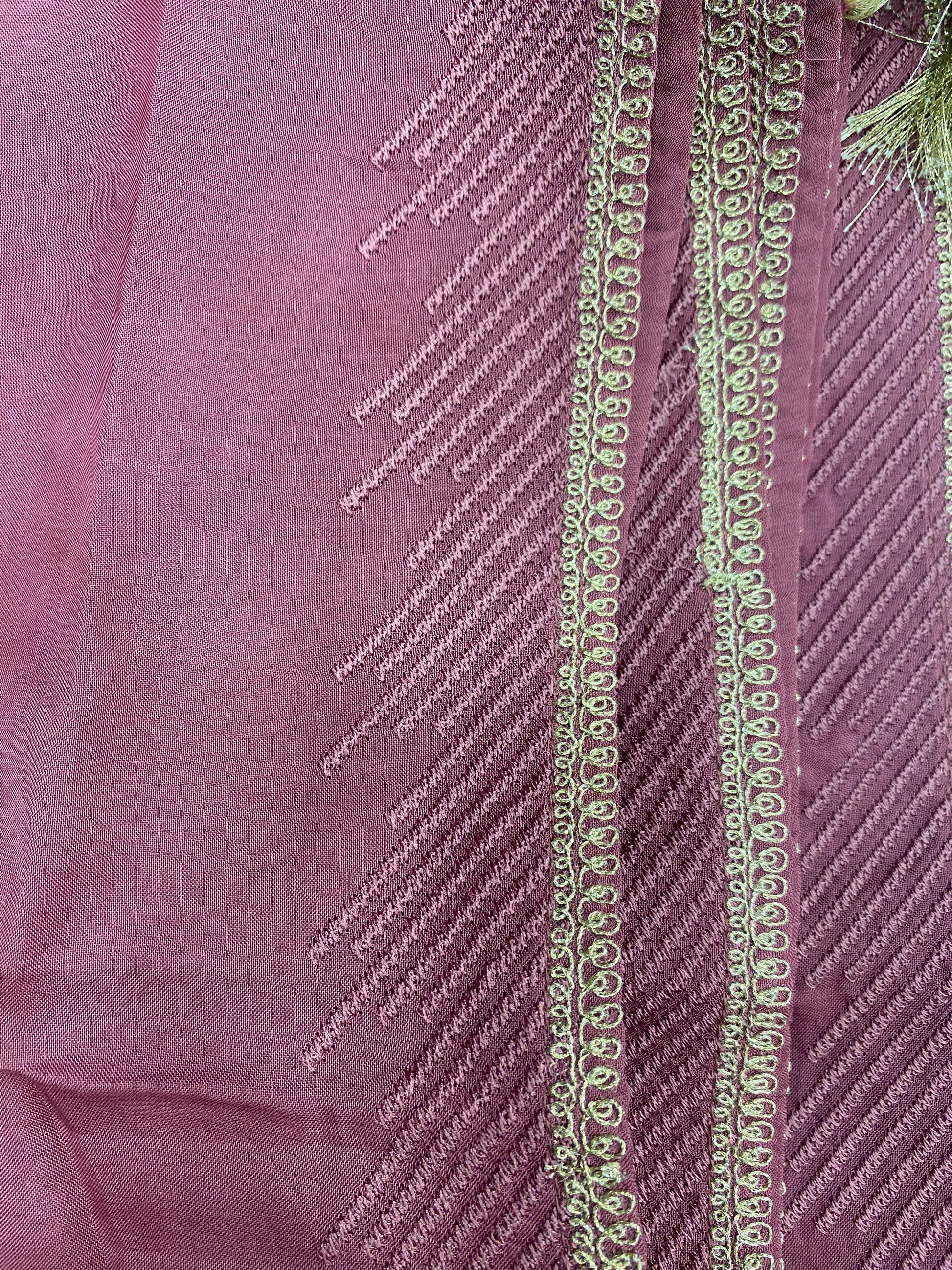 Mauve self Printed Embroidered Jacquard Silk Suit