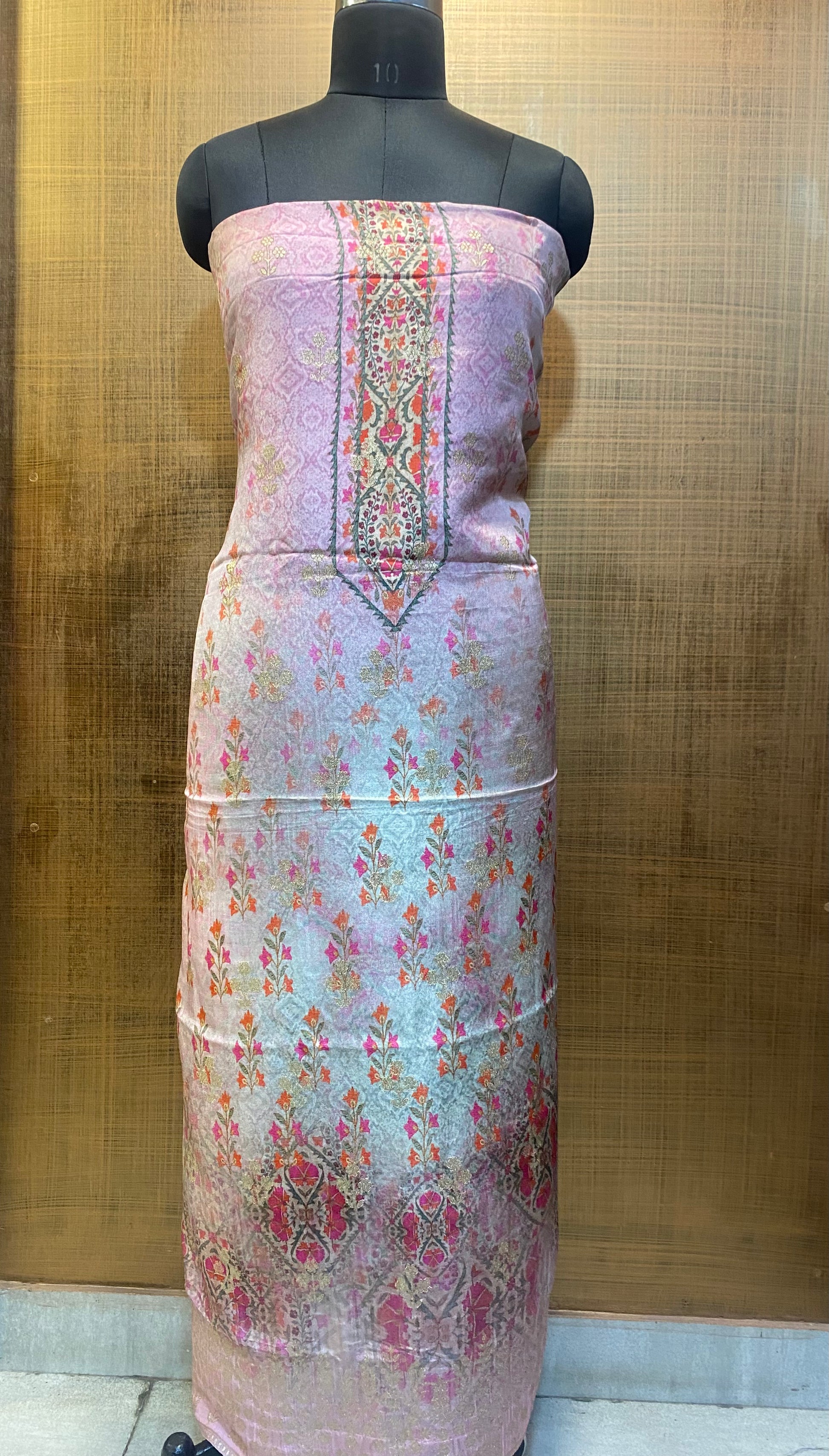 This Pink Printed Silk Banarsi booti & Border suit is perfect for the formal and festive season. Its shaded effect gives a luxurious and authentic look. Made with high-quality silk, this suit is both elegant and comfortable. Elevate your style and make a statement with this beautiful suit.