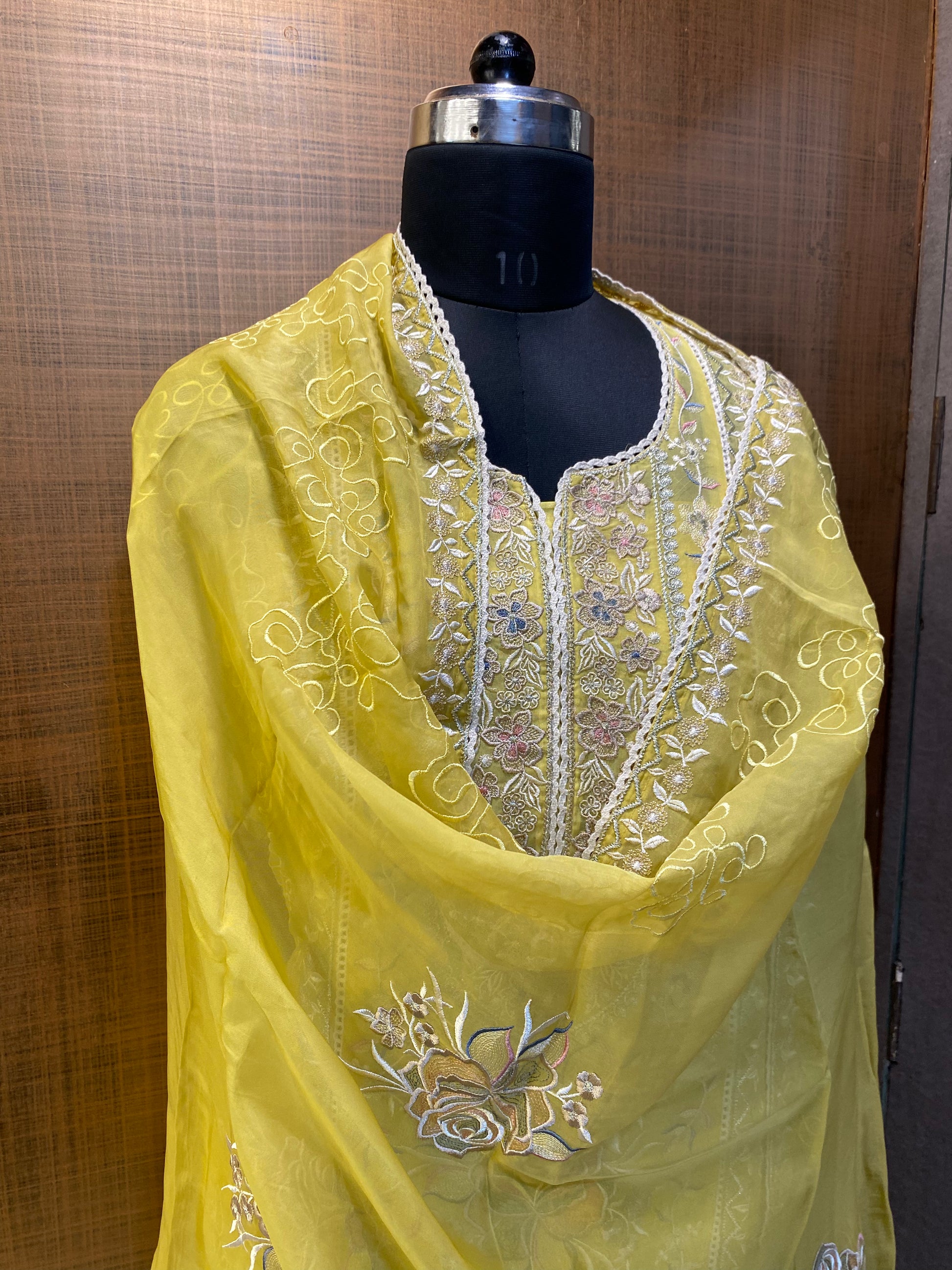 Sunshine Yellow Organza Embroidered suit